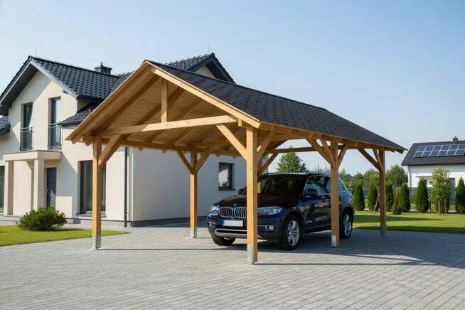 WIATA GARAŻOWA / CARPORT 21m² - GOTOWA Z MONTAŻEM Wykonam na Twojej działce solidną wiatę drewnianą pod auto, ...