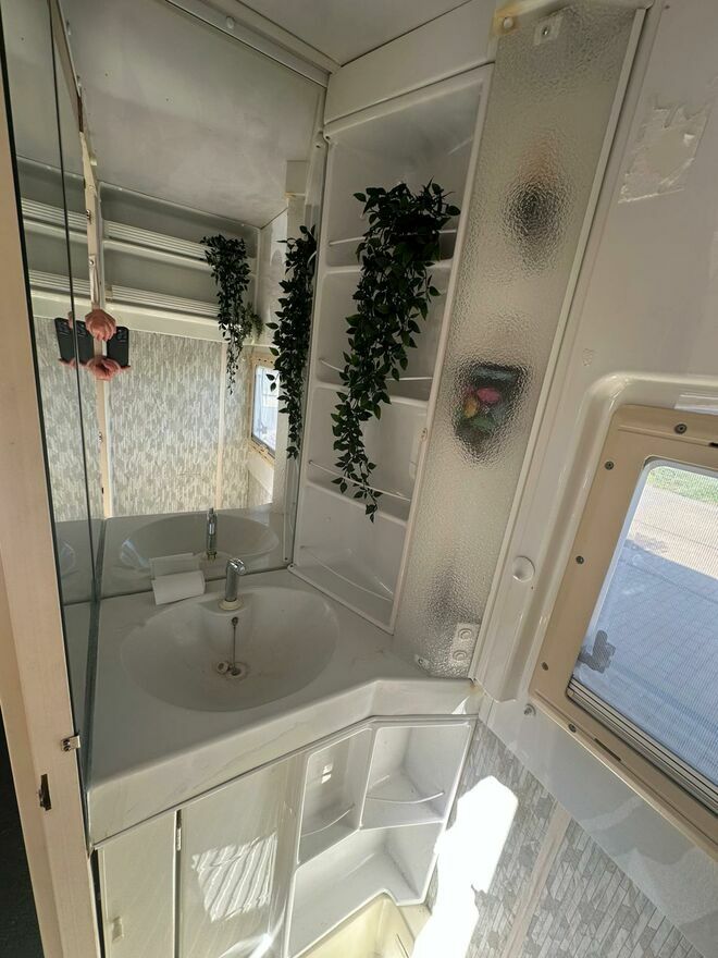 - Sprawny piecyk gazowy z nadmuchem oraz lodówka zasilana gazem, 12V oraz prądem 230V