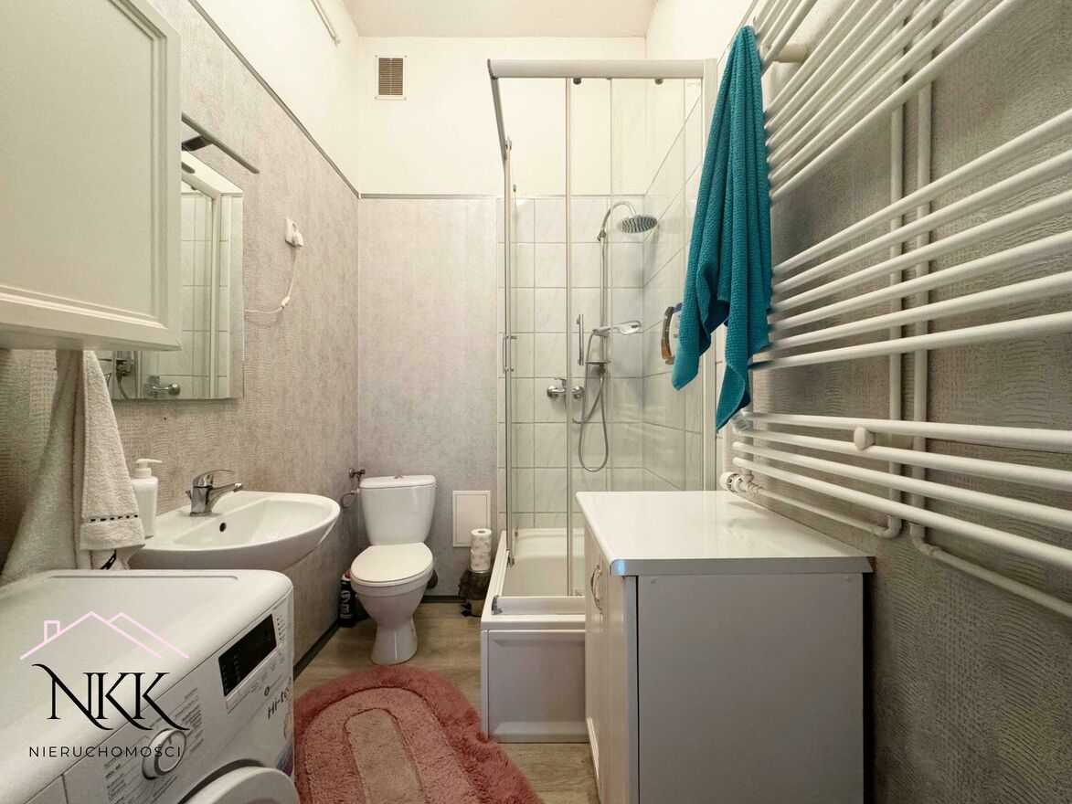 Mieszkanie w pełni umeblowane. Kuchnia wyposażona w cały sprzęt AGD: lodówka, zmywarka, mikrofalówka, piekarnik, kuchenka gazowa i okap. Łazienka z pralką, kabiną prysznicową, umywalką i WC została odświeżona pół roku temu.