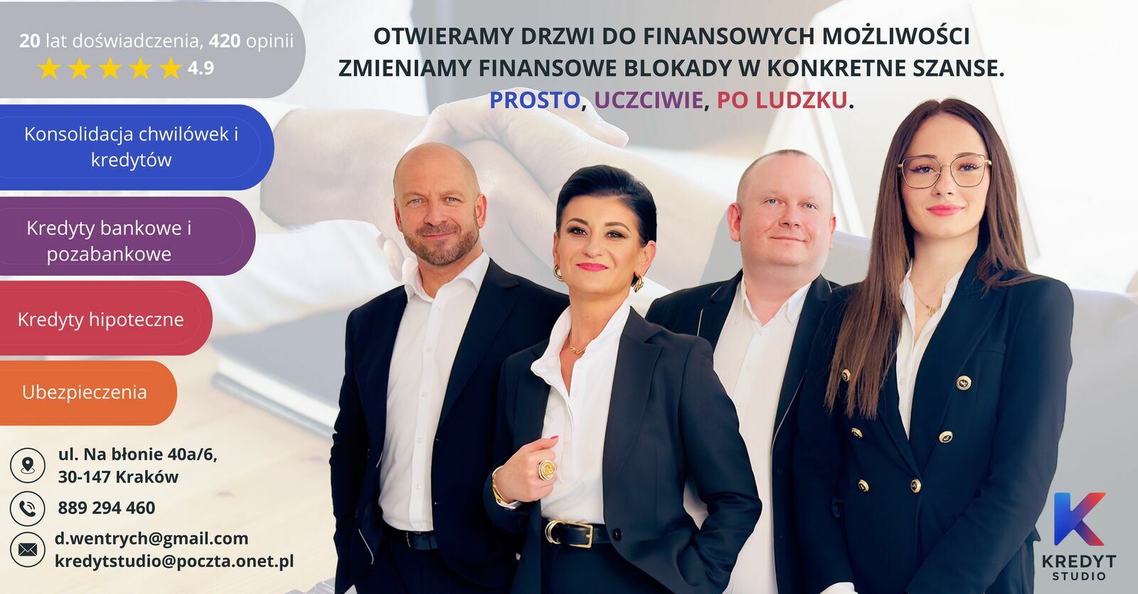 Firma Kredyt Studio- od 20 lat zajmujemy się:-konsolidacją zadłużeń, chwilówek, kredytów