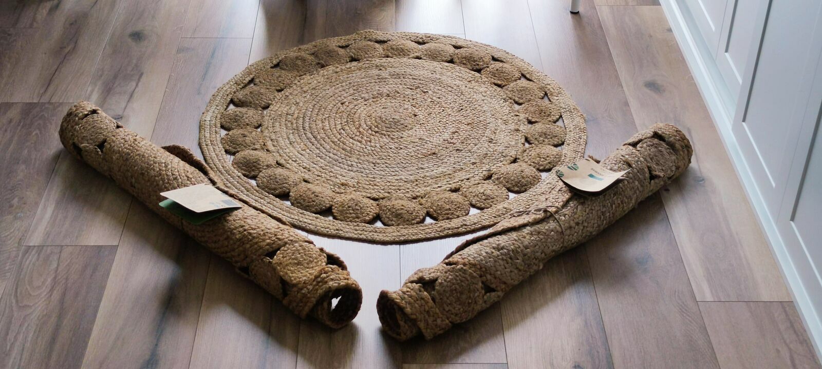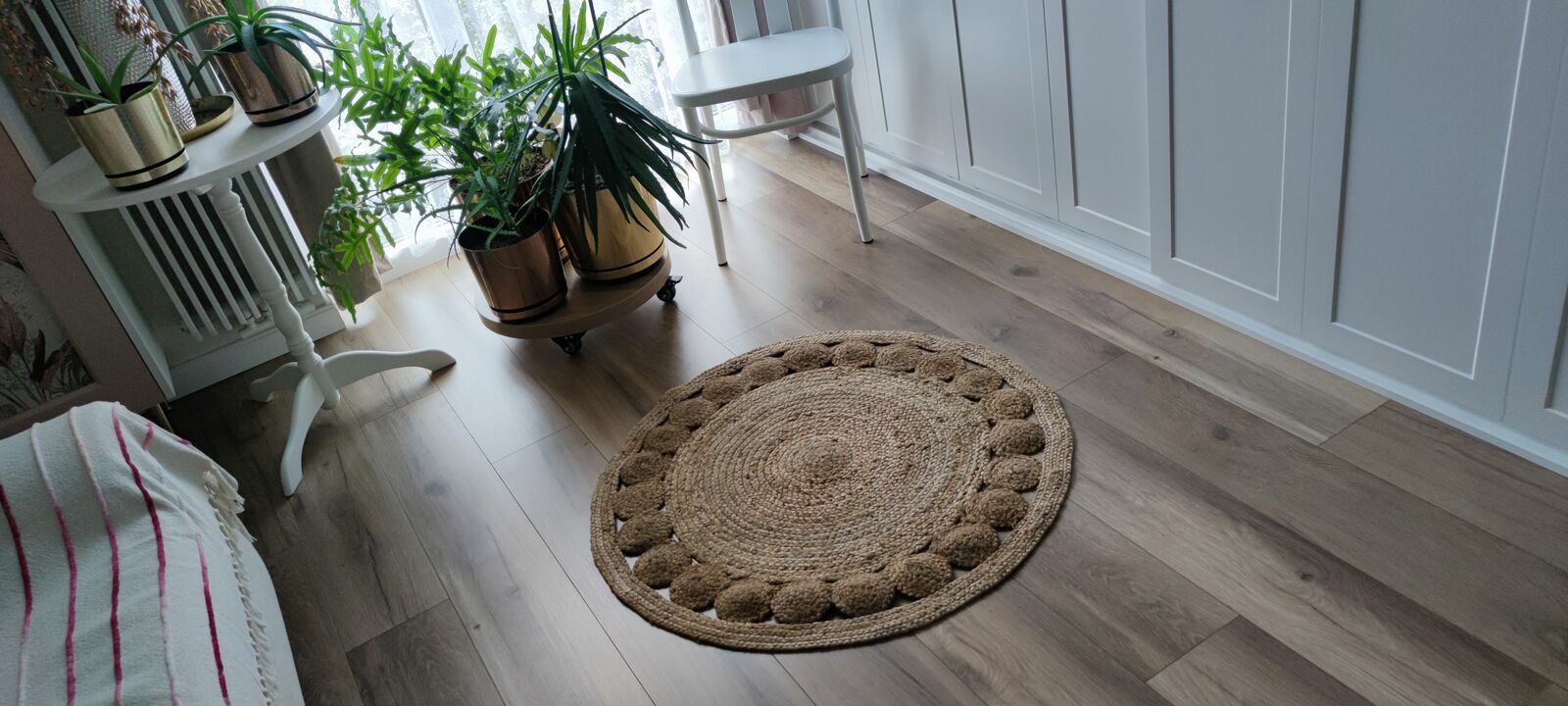 Śliczny, okrągły DYWAN naturalny z juty / boho / retro