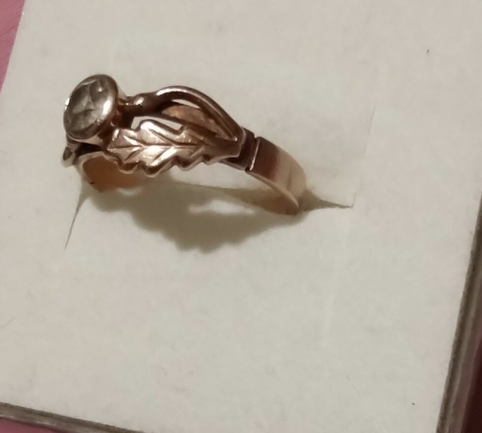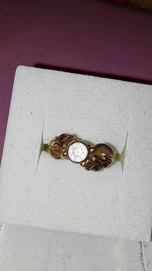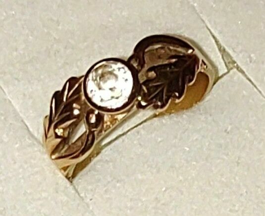 Sprzedam złoty pierścionek z dużym oczkiem które wplecione zostało pomiędzy liście dębu, .Próba 585 waga 3,50 gram. Rozmiar wg. tabeli rozmiarów 16-17.